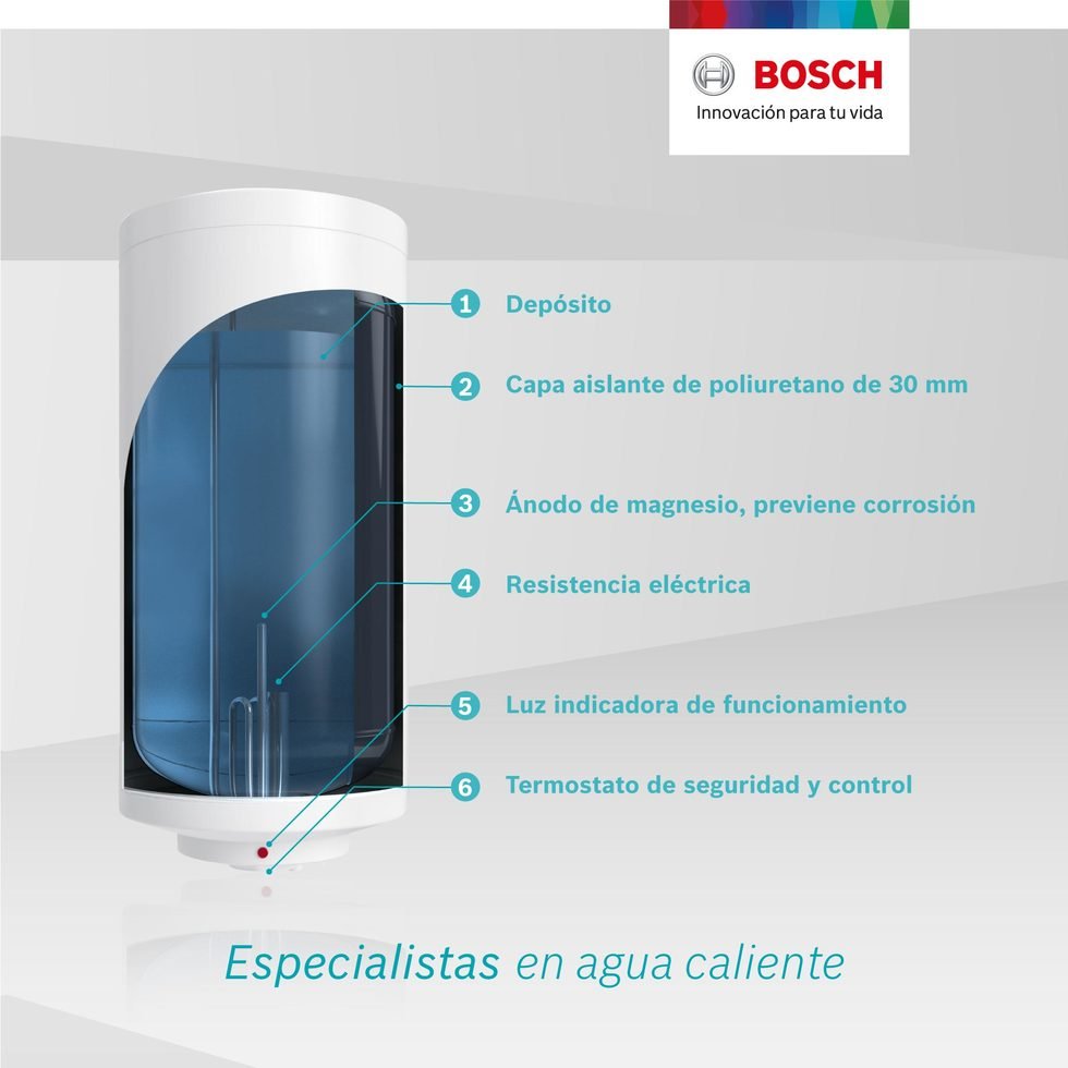 Posee ánodo de magnesio para prevenir la corrosión del tanque.
