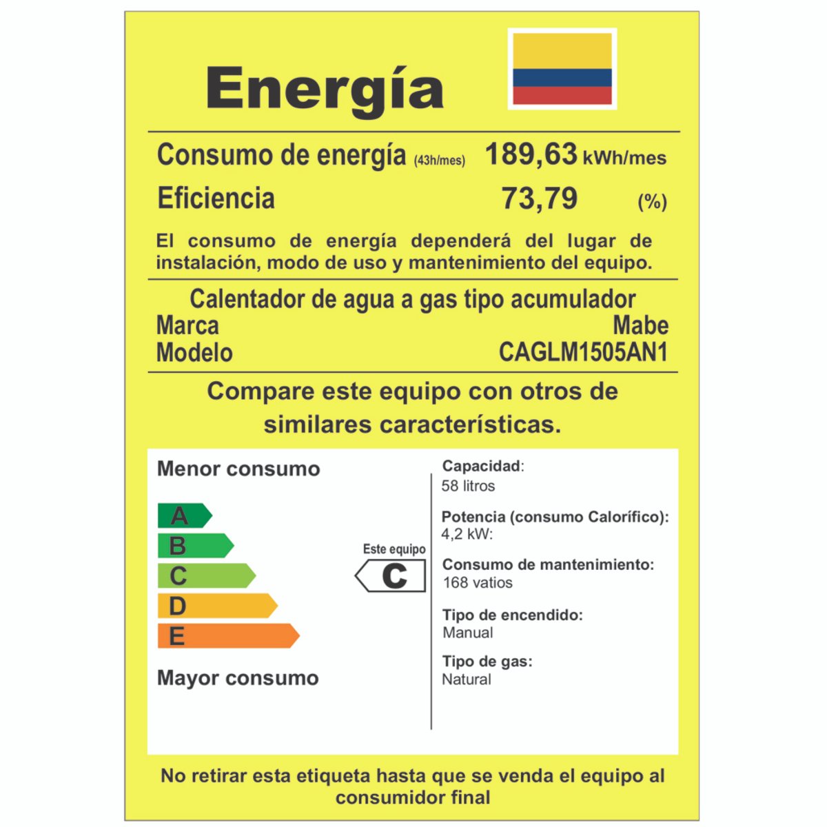 - Fuente de energía: Gas Natural