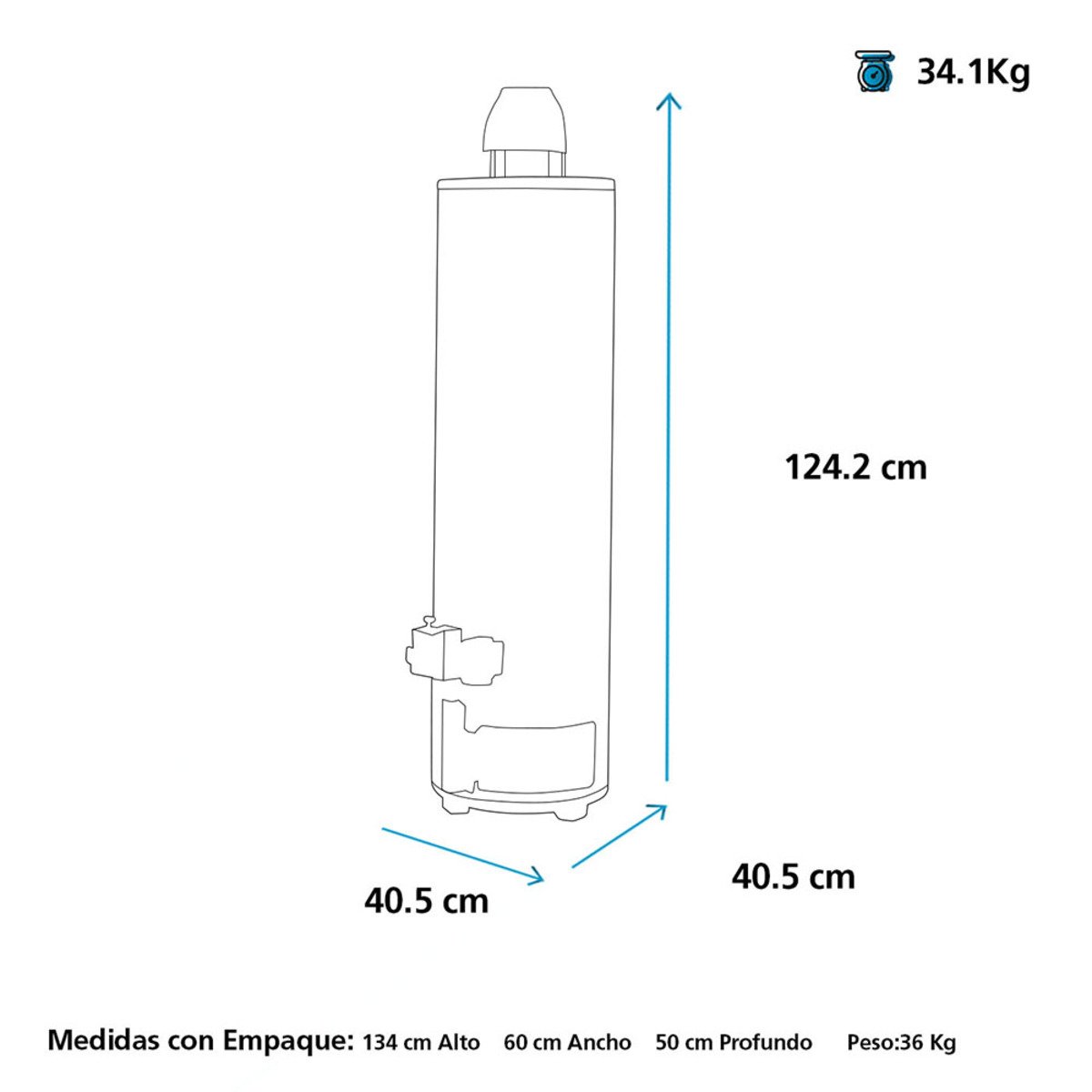 A prueba de mañanas frías, Agua caliente por más tiempo. Gracias a su tanque porcelanizado y pared interna de poliuretano. Practicidad y confort. Termostato con sistema de encendido por botón y apagado automático de seguridad. Fácil mantenimiento Con la válvula de drenado elimina sales y residuos acumulados que deterioran el tanque. Mayor duración Al contar con un ánodo de aluminio que previene malos olores y alarga su vida útil.