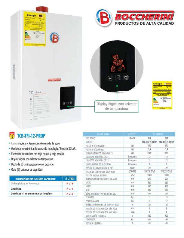 Categorías: A gas, Boccherini, Gas Propano, Tiro Forzado