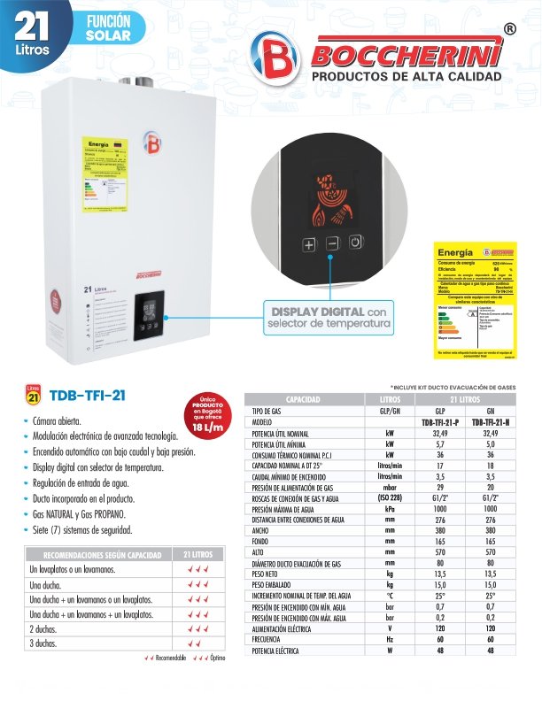 Calentador de Paso a Gas Tiro Forzado digital De 21 Litros