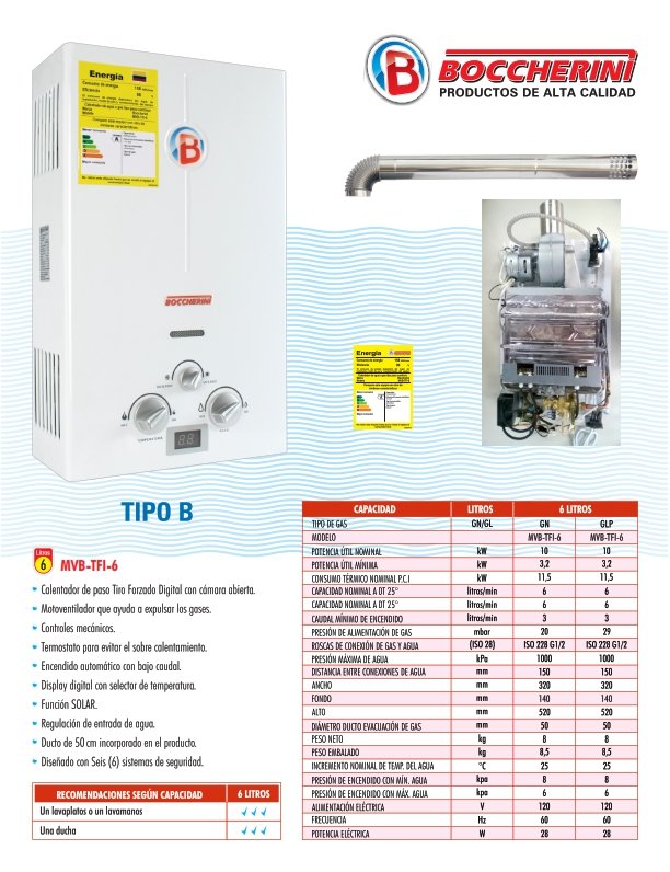 Calentador De Paso a Gas Tiro Forzado Mecánico 6 Litros