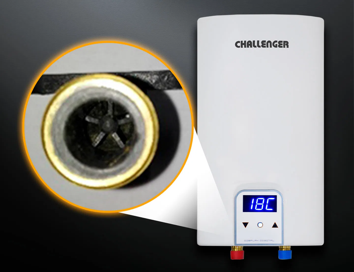 Display para visualizar la temperatura de salida del agua, y temperatura programada. Tarjeta electrónica de control integrada.